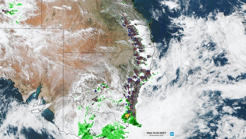 Image: Severe weather and severe thunderstorm warnings areas at 4pm AEDT on Wednesday, November 29, 2023.