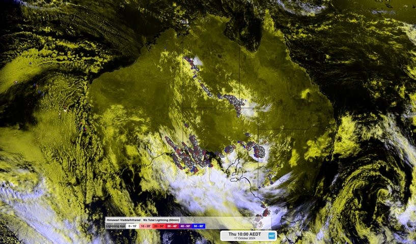 Video: Lightning strikes over Australia during the 24 hours ending at 11am AEDT on Thursday, October 17, 2024.