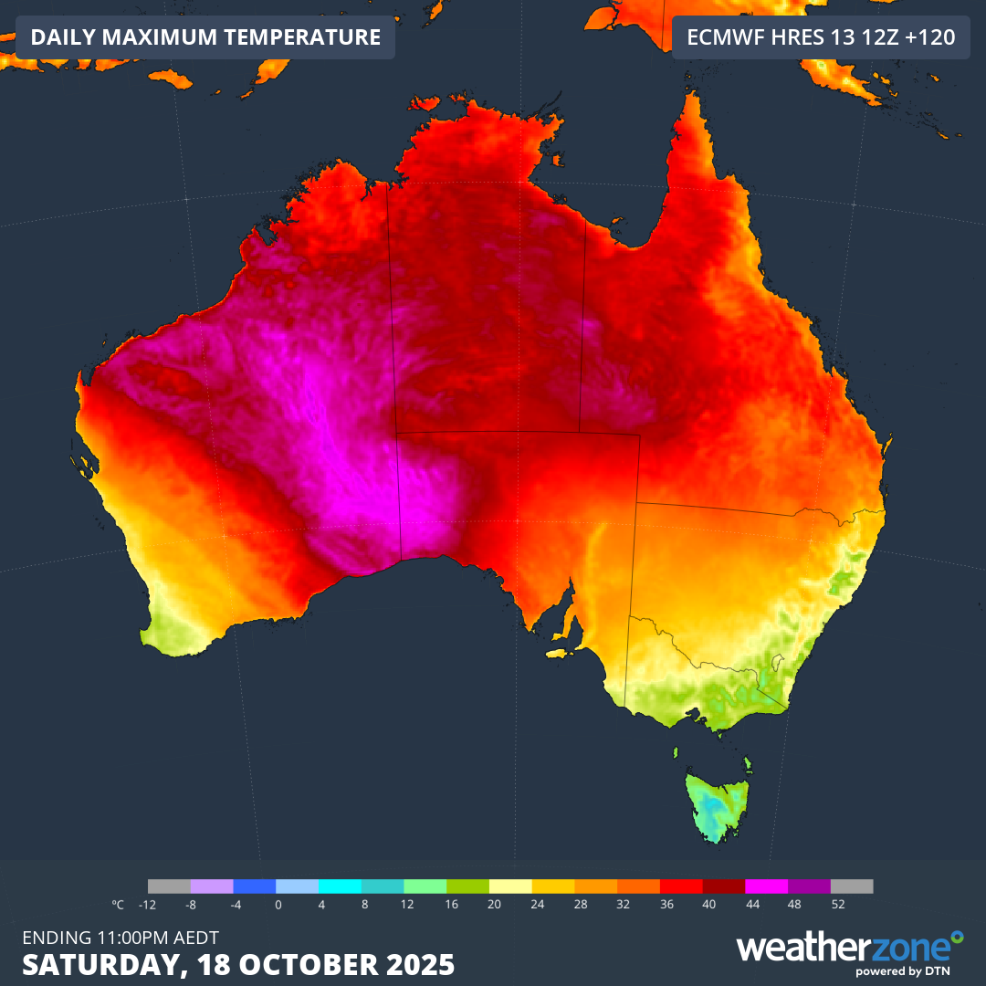 Image: Forecast maximum temperature on Saturday, October 18, 2025.