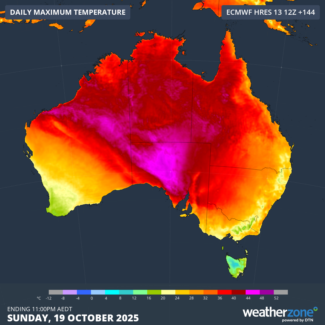 Image: Forecast maximum temperature on Sunday, October 19, 2025.