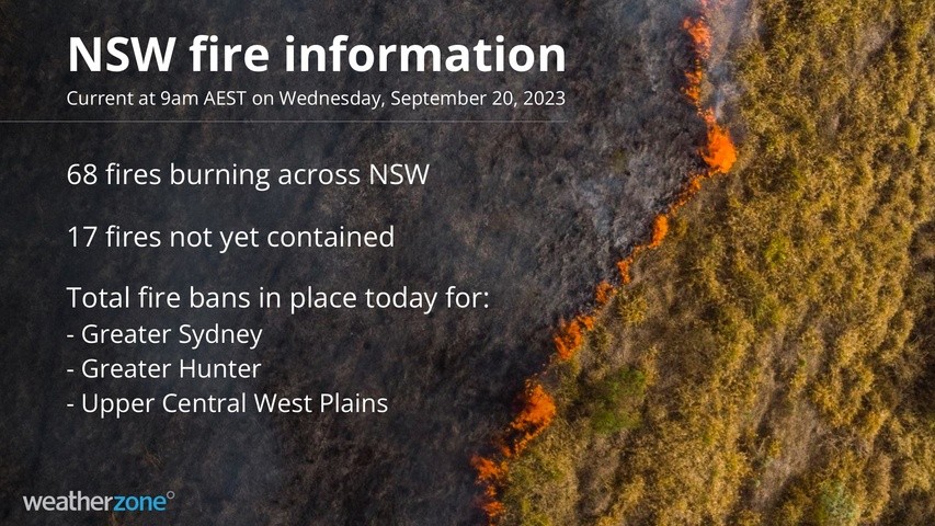 The NSW Rural Fire Service has declared a total fire ban in three regions: Greater Sydney, Greater Hunter, and Upper Central West Plains. Please click here for a reminder of the total fire ban rules.