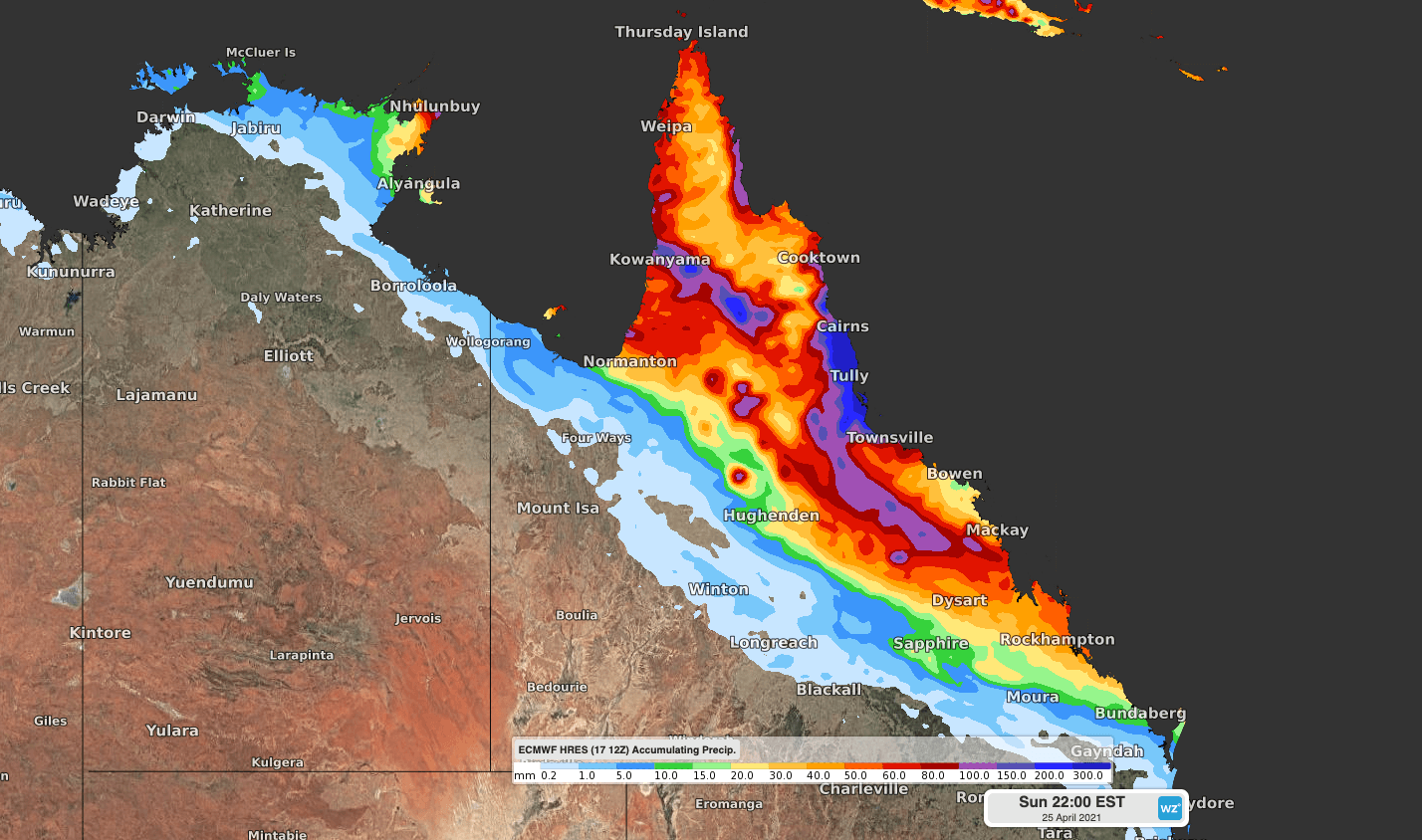 Further south, a rain gauge at Mulgrave Mill received 180mm. This is on par with the site's April monthly average of 184.5mm.