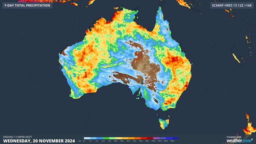 Image: Forecast accumulated rain during the next 7 days (for the week ending on Wednesday, November 20, 2024).