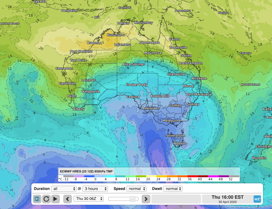 While the passage of cold fronts is not uncommon in April, such a strong frontal system is unusual for this time of the year. In Melbourne, the mercury may struggle to reach 14 degrees on Thursday, which has only happened three times in the last 15 years in April.