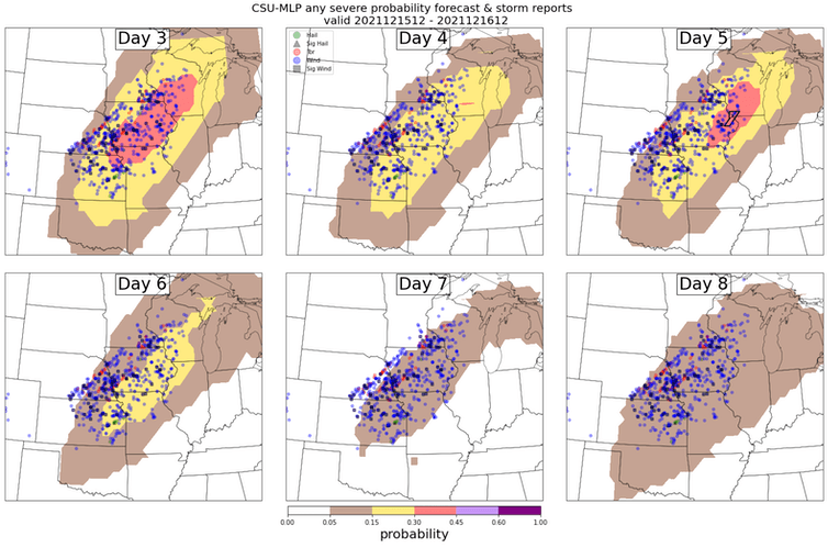 We have since applied similar methods to forecasting of tornadoes, large hail and severe thunderstorm winds. Other research groups are developing similar tools. National Weather Service forecasters are using some of these tools to better assess the likelihood of hazardous weather on a given day.