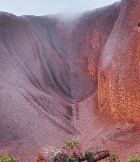 As mentioned, rain also fell in the Uluru area, although it wasn't as heavy as in Alice Springs, around five hours to the northeast, with 34.6 mm over two days. That was still enough to get a few waterfalls flowing down the iconic Rock.