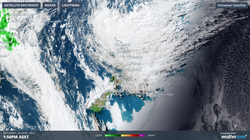 Image: Himawari-9 visible satellite imagery at 3:50pm (NZ time) Saturday 29th.