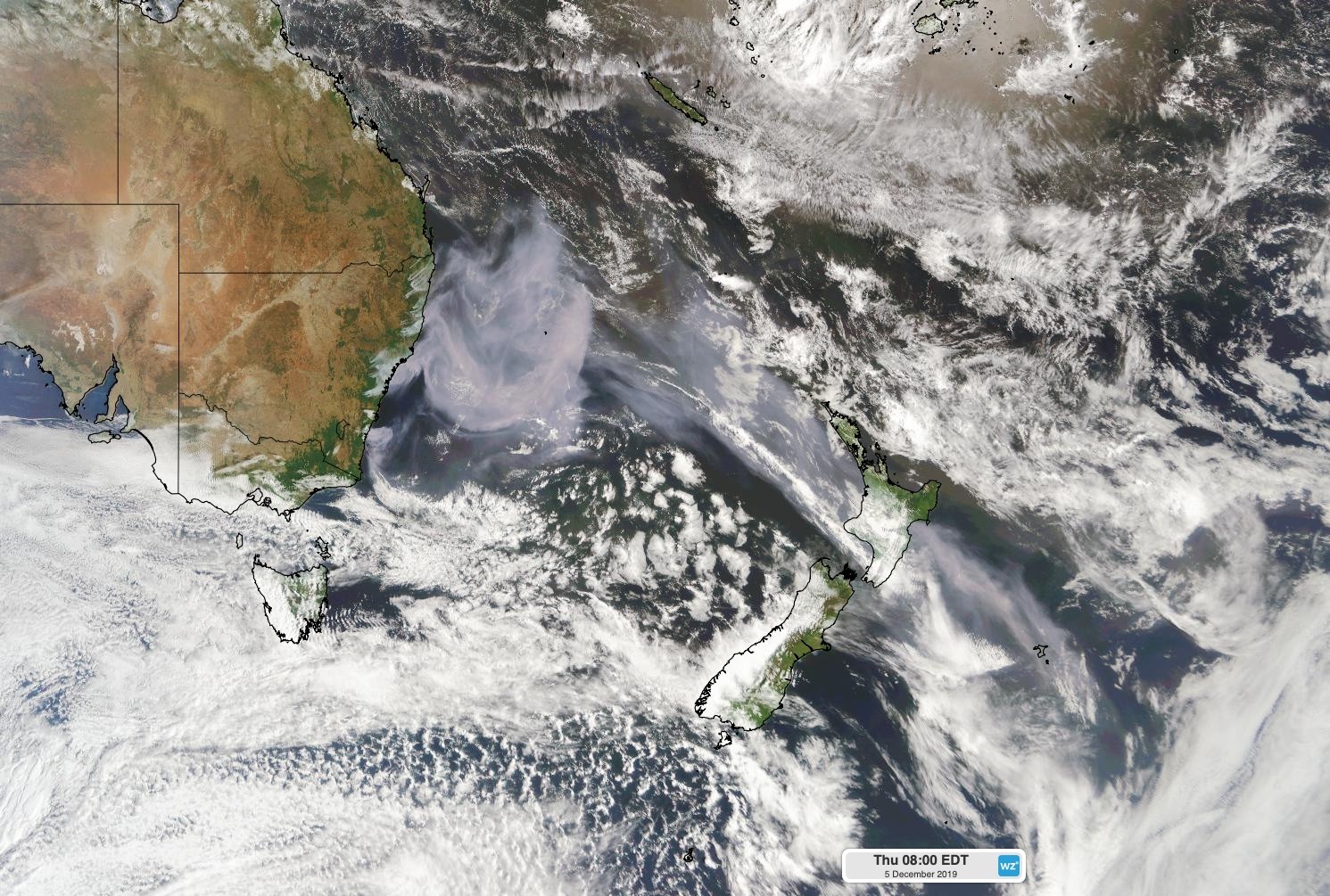 This week, persistent westerly winds have allowed a large mass of smoke to drift across the Tasman Sea, where it could be seen passing over New Zealand's North Island on Thursday.