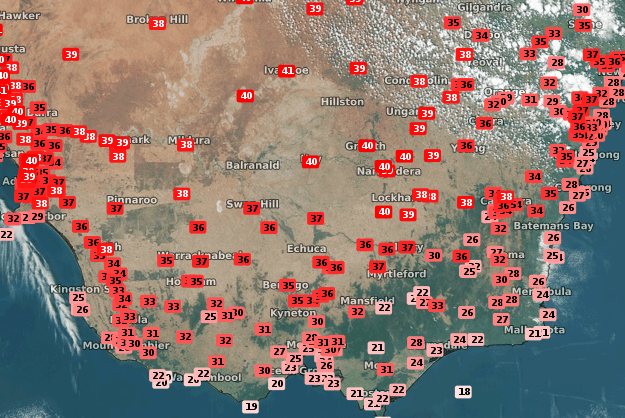 A low pressure trough is responsible for dragging this very hot airmass into the southeast. A high pressure system over the Tasman is also helping to prevent the heat from escaping.