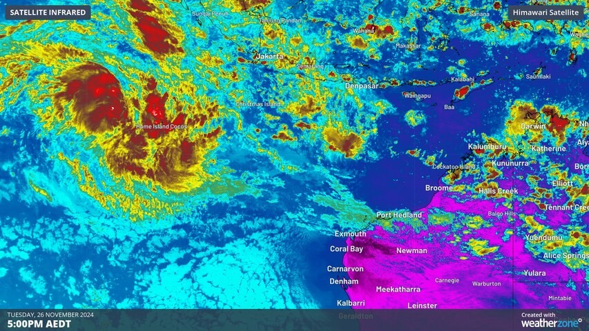 On Tuesday morning, a tropical low was sitting about 450 km northwest of the Cocos (Keeling) Islands, near the northwest corner of Australia’s area of responsibility.