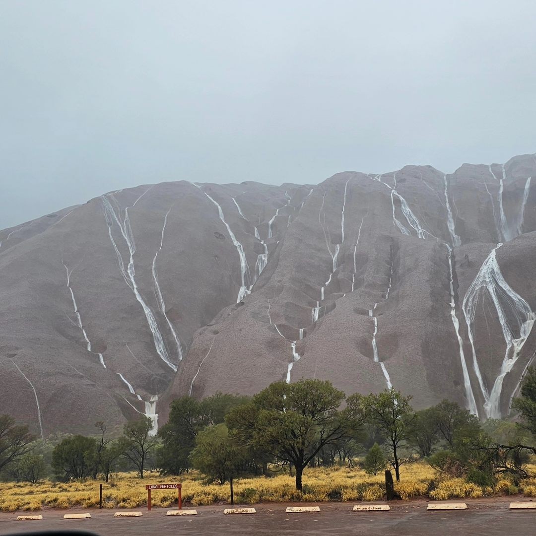 Image: Waterfalls on Uluru after some heavy rain in early March 2024. Source: @the_working_journey / Instagram