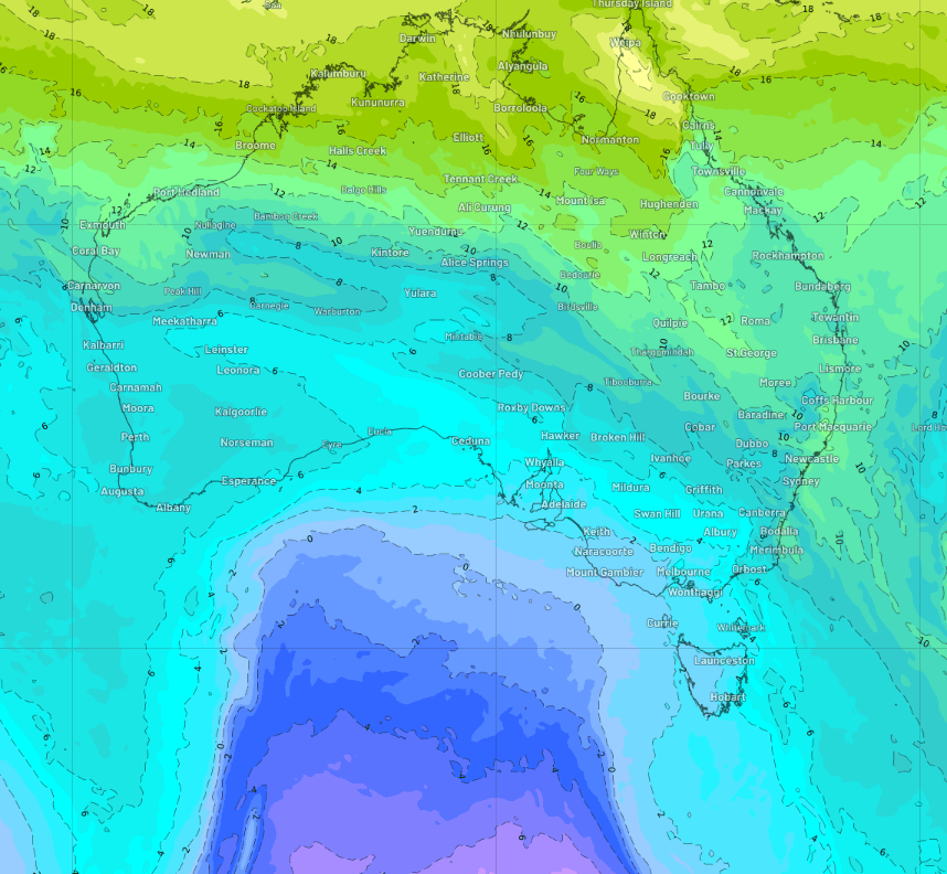 This cool air mass will be accompanied by strong winds which will make these temperatures feel much cooler. As of 2pm AEST on Thursday, damaging wind warnings are current for parts of Vic, Tas, NSW and the ACT. Please keep an eye out for the latest warnings.