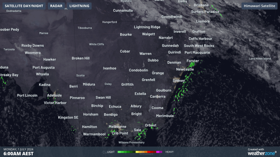 See how the cold air associated with the speckled cloud field off the NSW south coast hasn’t quite made its way as far north as the Queensland border yet?