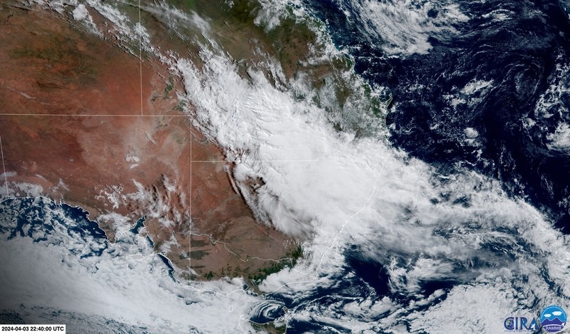 Video: Thick clouds sitting over eastern Australia on Thursday morning as the system starts to take shape.