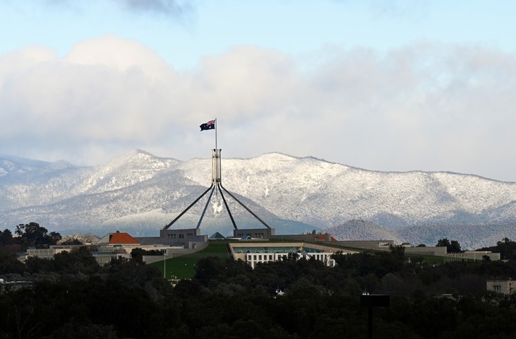 Image: Scenes like this 2022 panorama of the Tidbinbilla Ranges behind Parliament House (often mistaken for the Brindabellas which are one range further back) were non-existent in 2023. Source: AAP Image/Lukas Coch.