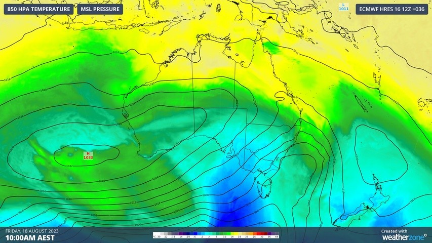 Image: Cold air over southeastern Australia on Friday morning.