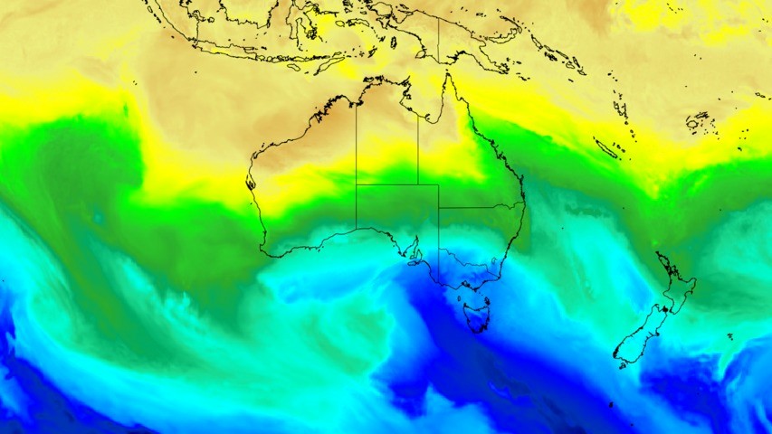 Image: Cold air extending from Antarctica to southeastern Australia on Saturday night.
