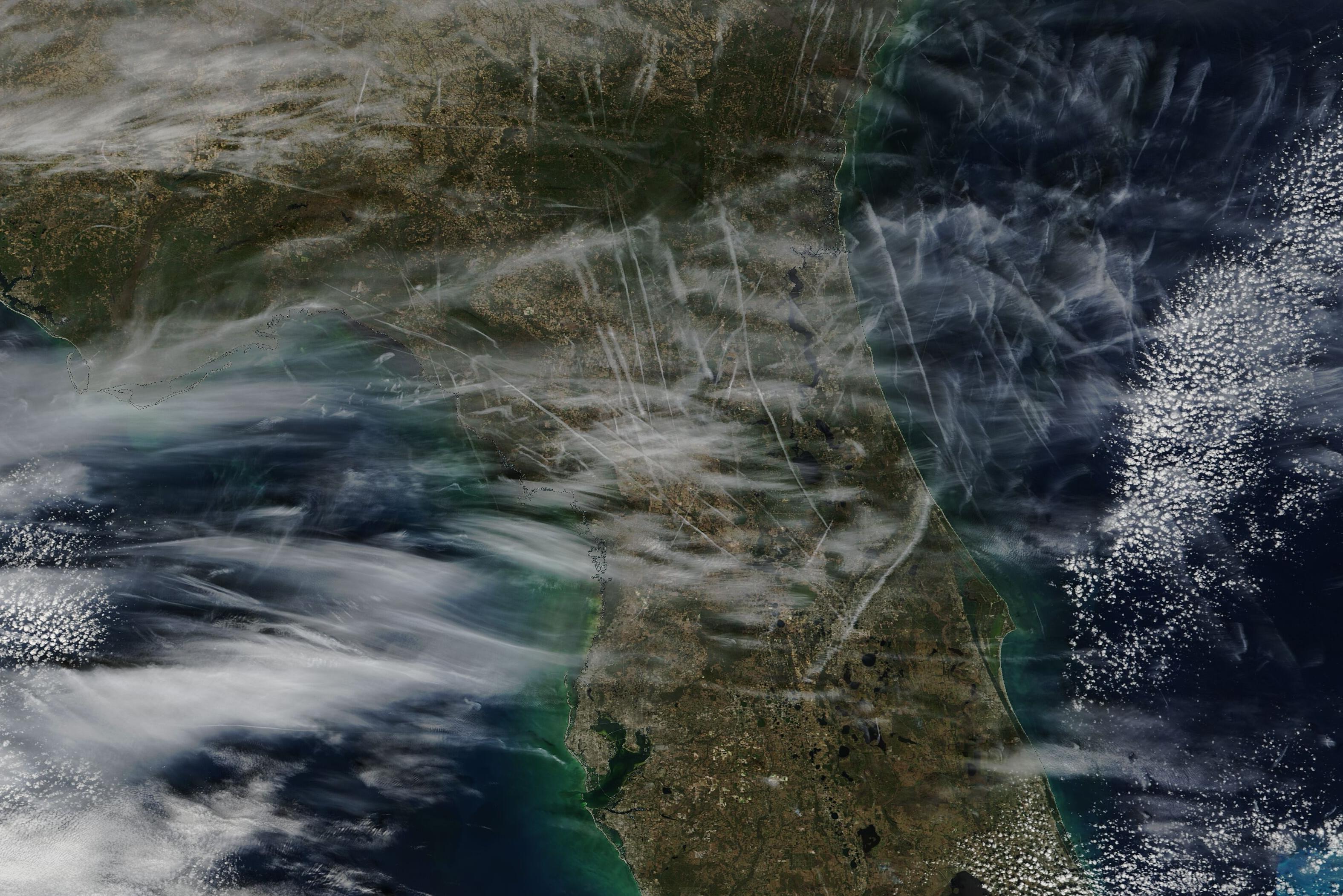 Image: Contrails over northern Florida on the morning of January 9, 2004. Source: NASA Worldview / Terra.