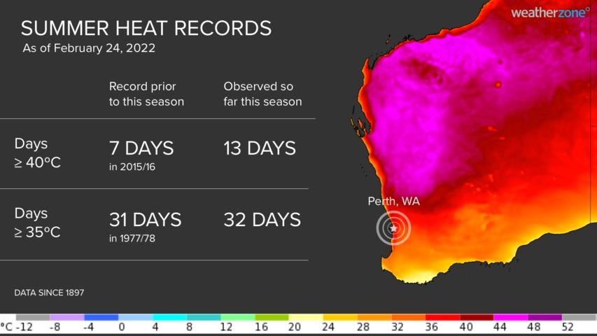 Image: Observed heat records in Perth so far this season, as of February 24.