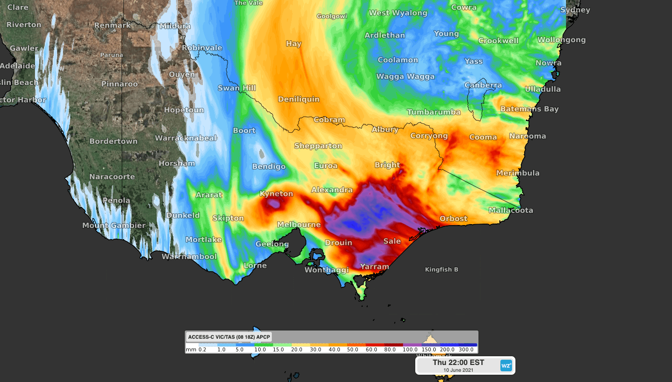 A low pressure system will develop to the east of Victoria on Wednesday, causing a stream of moisture-laden winds to flow across Victoria from the south.