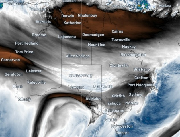 The system will head east into the weekend, bringing cooler temps and rain across several states, with the heaviest falls in Victoria and southern NSW. Unlike last night's system, most of the moisture won't make it to the east coast.