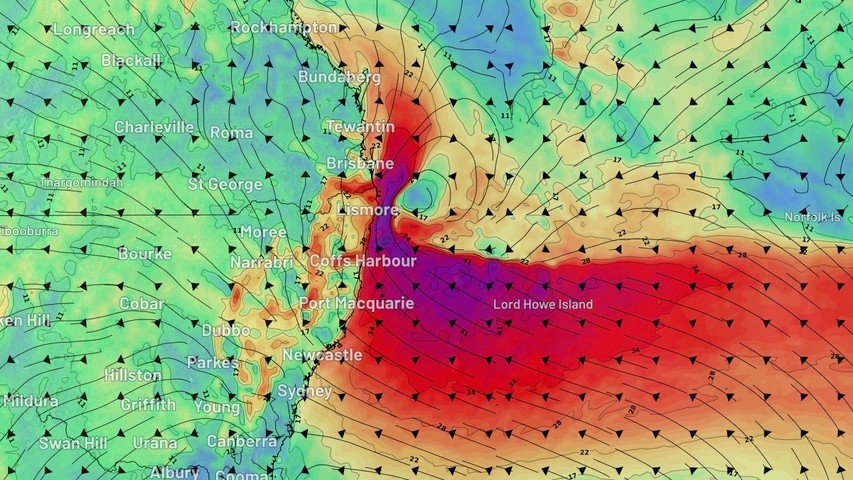 Most forecast models expect the low to weaken on Sunday, which would allow wind and rain to ease in NSW and Qld.