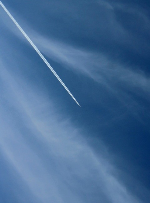 Title image: Cirrostratus cloud with a jet airliner contrail in the foreground credit - unsettled photography