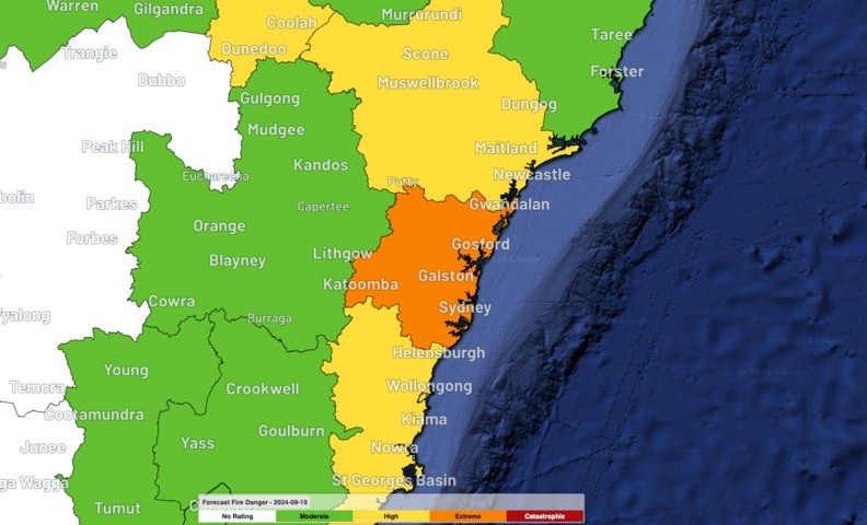 The Greater Sydney and Illawarra/Shoalhaven fire weather districts are forecast to see High fire danger ratings on Wednesday. Conditions will deteriorate further on Thursday, with Extreme fire danger forecast for the Greater Sydney district and High fire danger predicted in the Far North Coast, Greater Hunter, North Western and Illawarra/Shoalhaven districts.