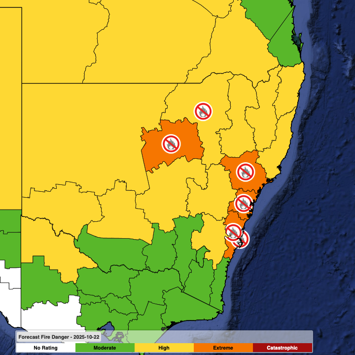 Image: Forecast fire danger ratings on Wednesday, October 22, 2025.