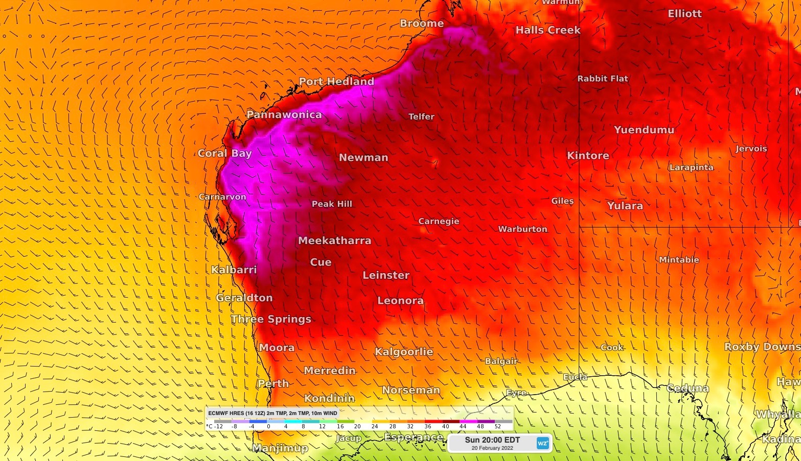 A stubborn high-pressure system moving slowing into the Great Australian Bight will direct an extremely hot and dry airmass over northwestern WA during the next several days.