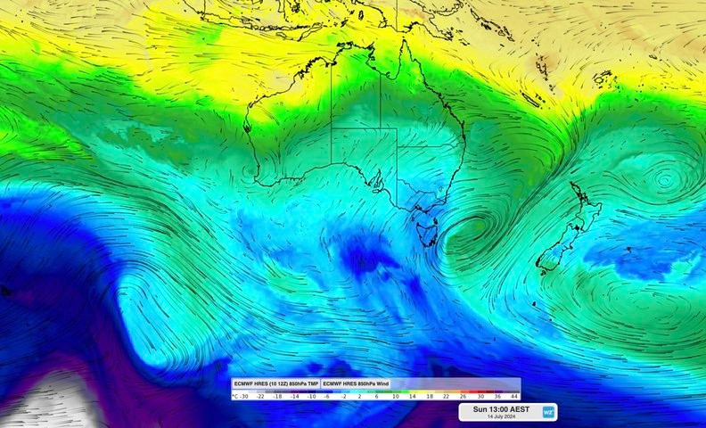 This polar air mass will cause temperatures to plummet for several days and nights, likely getting cold enough for decent snowfalls outside the alps from Tasmania to northern NSW.