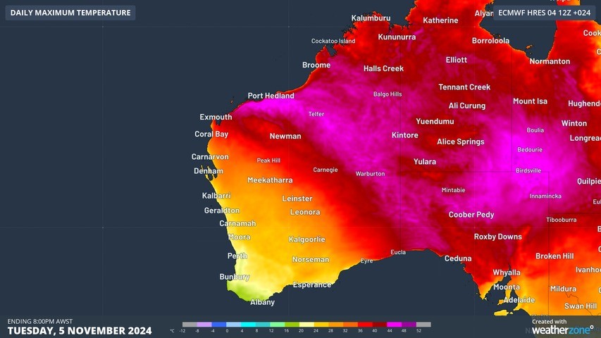 While the southwest of the state is enjoying mild spring temperatures, the cooler airmass did not make its way to the north of the state. Severe heatwave conditions are occurring as a result in the south and north interior of the state in the coming days.