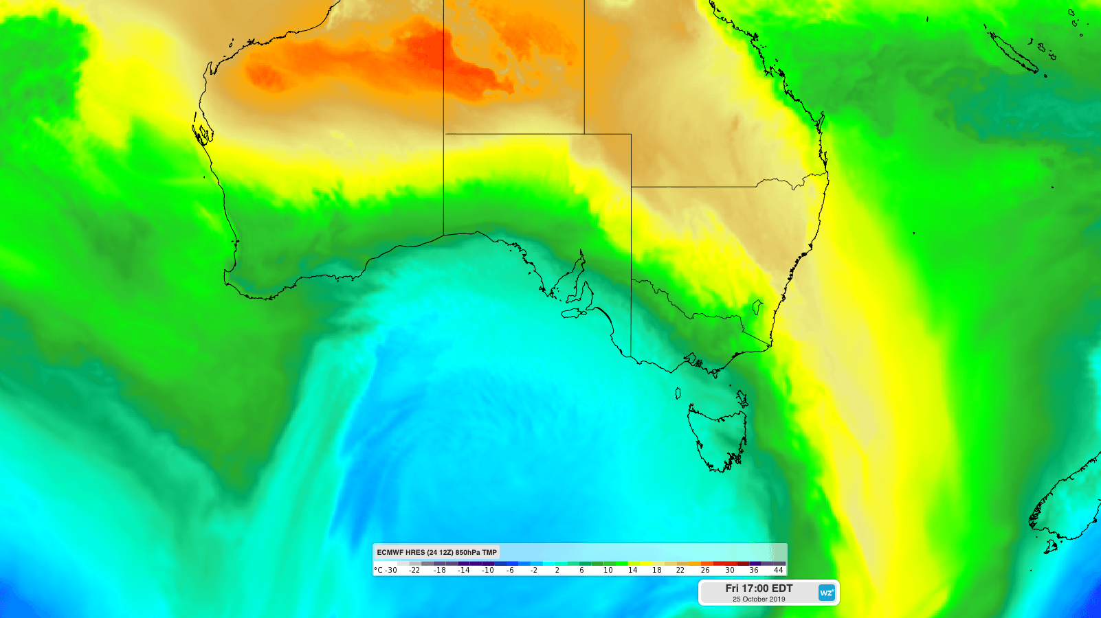 A strong cold front crossing southeastern Australia on Friday is separating these two contrasting air masses.