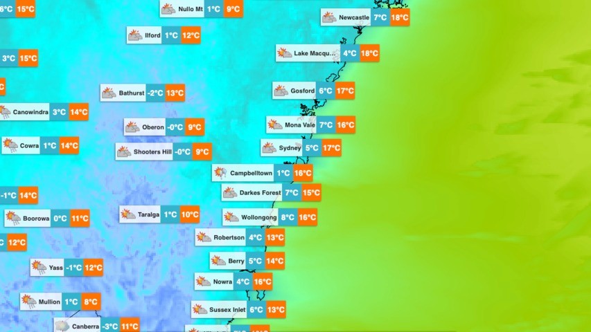 Sydney’s official weather station at Observatory Hill registered a low of 6.5°C early on Wednesday, which was its coldest start so far this year. However, it should get even colder tomorrow morning.