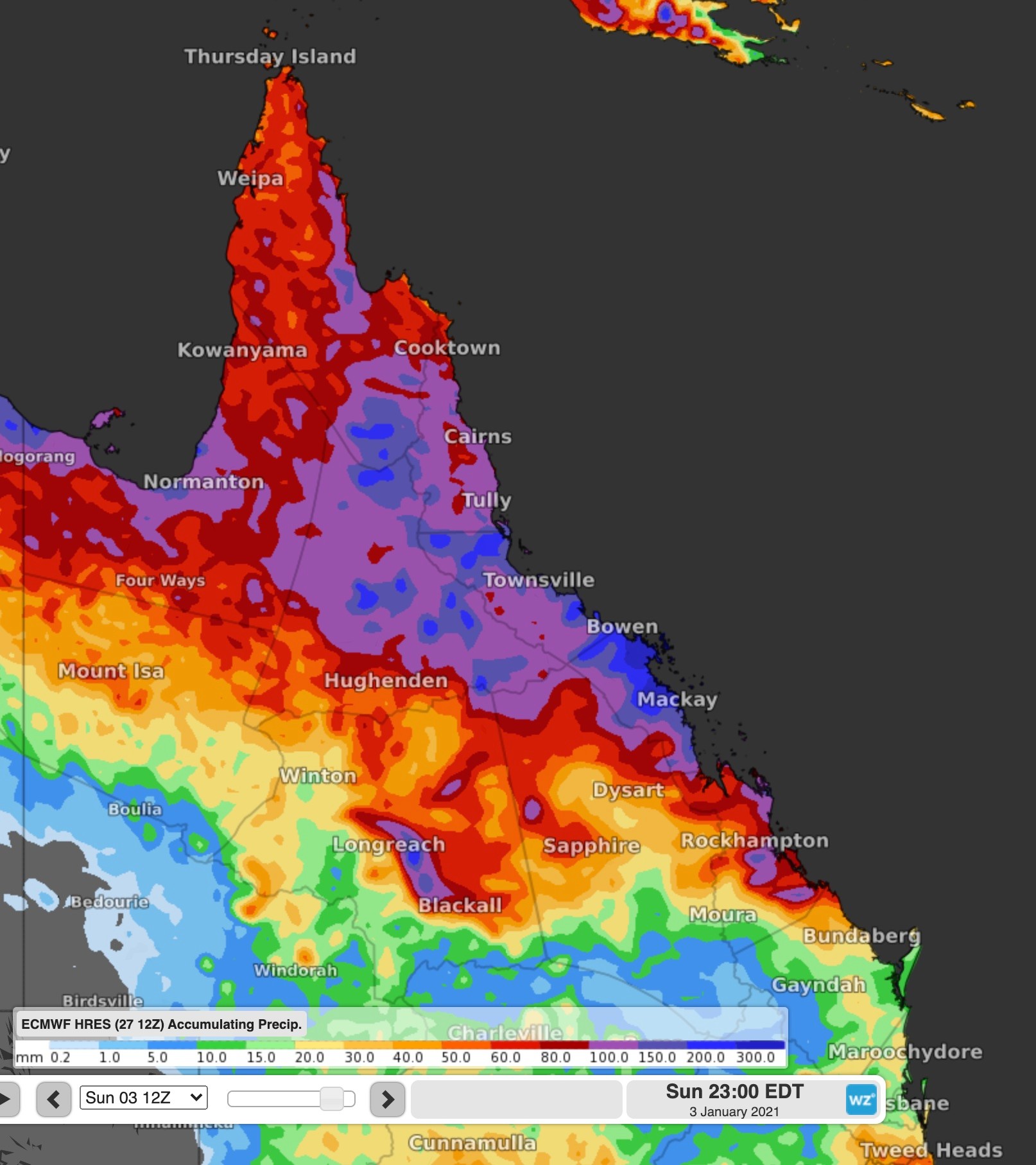 By the end of the week, much of the north can expect to receive about 80-120mm in the gauge, with the coast expecting widespread falls of 100-150mm. However, there is likely to be some much heavier falls, possibly exceeding 300mm or even exceeding 500mm for some flood-prone parts.