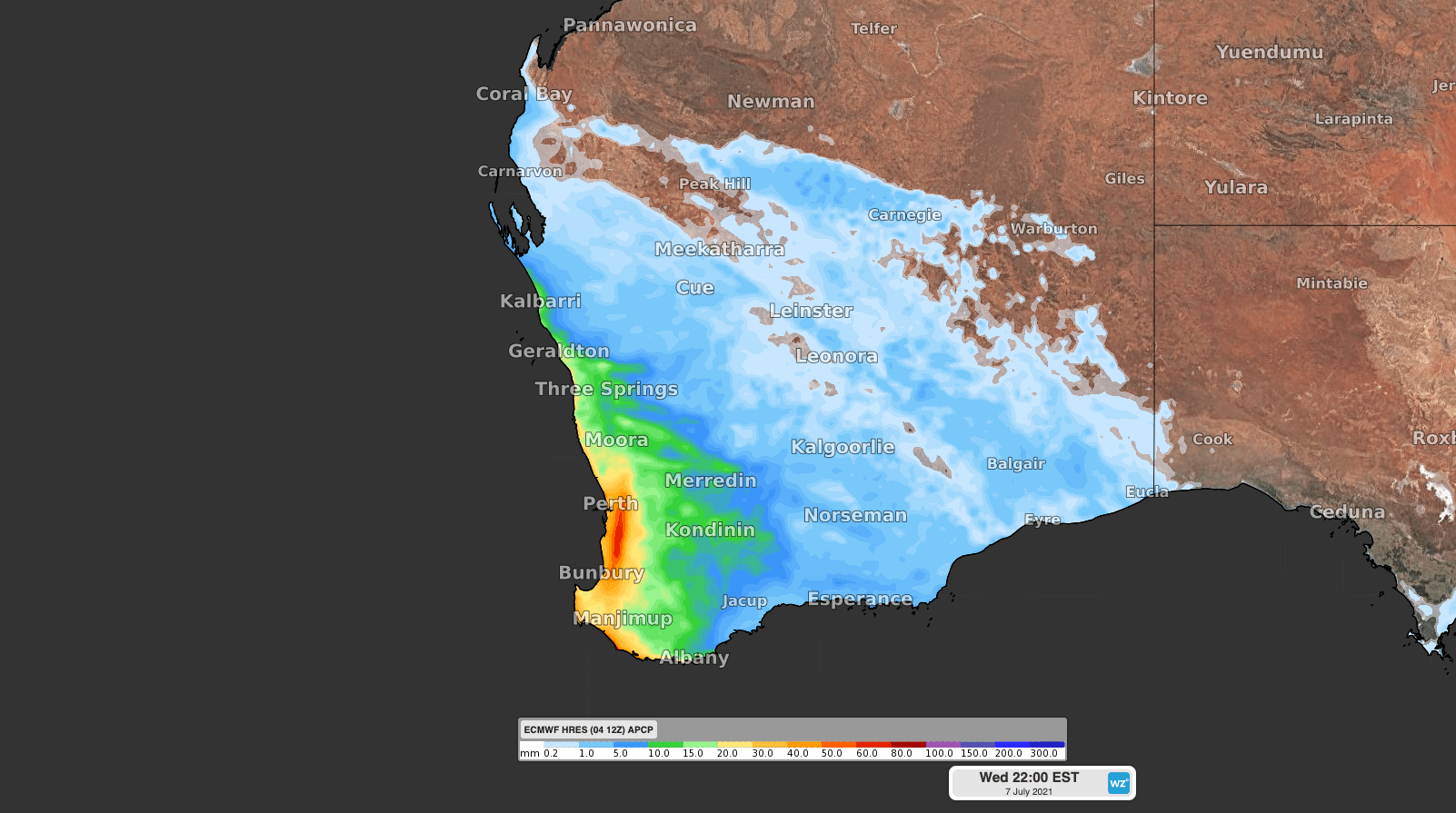 These systems delivered widespread falls of 30-50mm across the state’s Lower West and South West districts, including 44.6mm at Perth and 50mm at Bickley during the 24 hours to 9am on Monday. This was Perth’s second wettest day so far this year and its wettest July day in 20 years.
