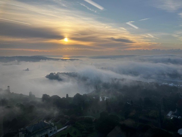 This is the first fog Sydney’s east has seen this autumn, under the influence of light winds and clear skies allowing the temperature to drop.