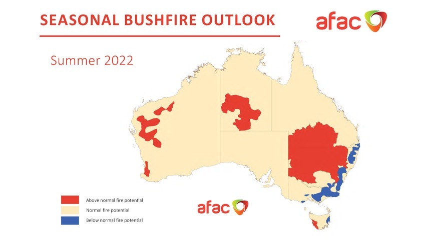 Image: Australia’s Seasonal Bushfire Outlook for summer 2022. Source: AFAC