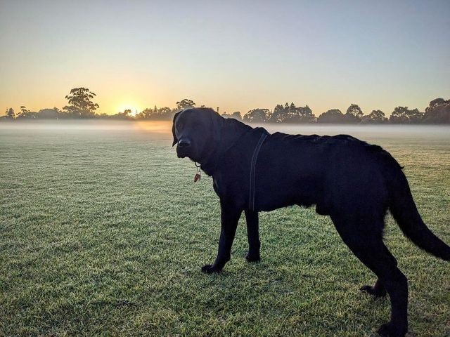 While Perth locals enjoyed the relatively rare sight of frosty lawns, not every local was convinced they were a good thing. This black labrador looked a little uncertain about its morning walk across a frosty Perth playing field, as temps remained below zero after sunrise.