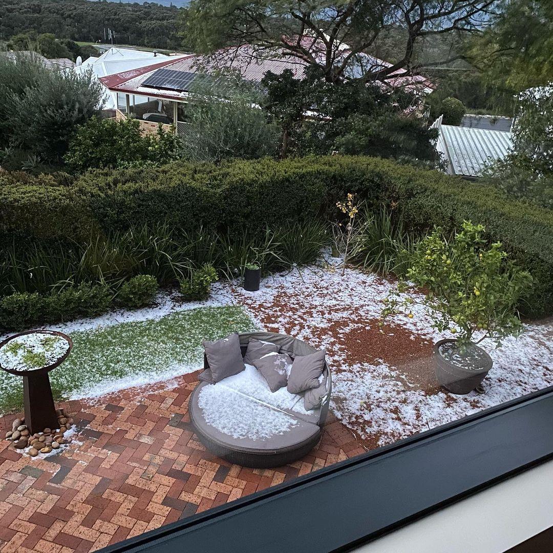 Image: Hail in Albany on Monday morning. Source: @lorrihopkins / Instagram