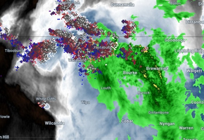 The radar in the area is pretty intense as we write this story late on Wednesday afternoon, with thunderstorms generating almost 300,000 lightning strikes within a 400 km radius of White Cliffs between 5am and 5pm today.