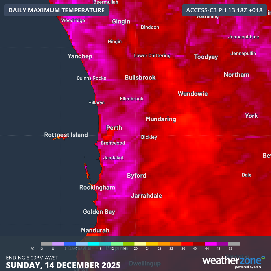 Image: Forecast maximum temperatures for the Perth area for Sunday 14th December (Acc-C model).