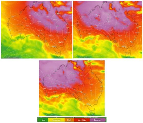 Figure 1: the UV index for today, Sat 18th March, from 1:00pm (top left), 2:00pm (top right) and 3:00pm (bottom).