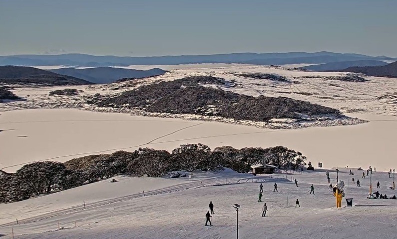 An interesting sight greeted visitors to Victoria’s Falls Creek ski resort this Tuesday morning: an almost totally frozen lake below the ski slopes.