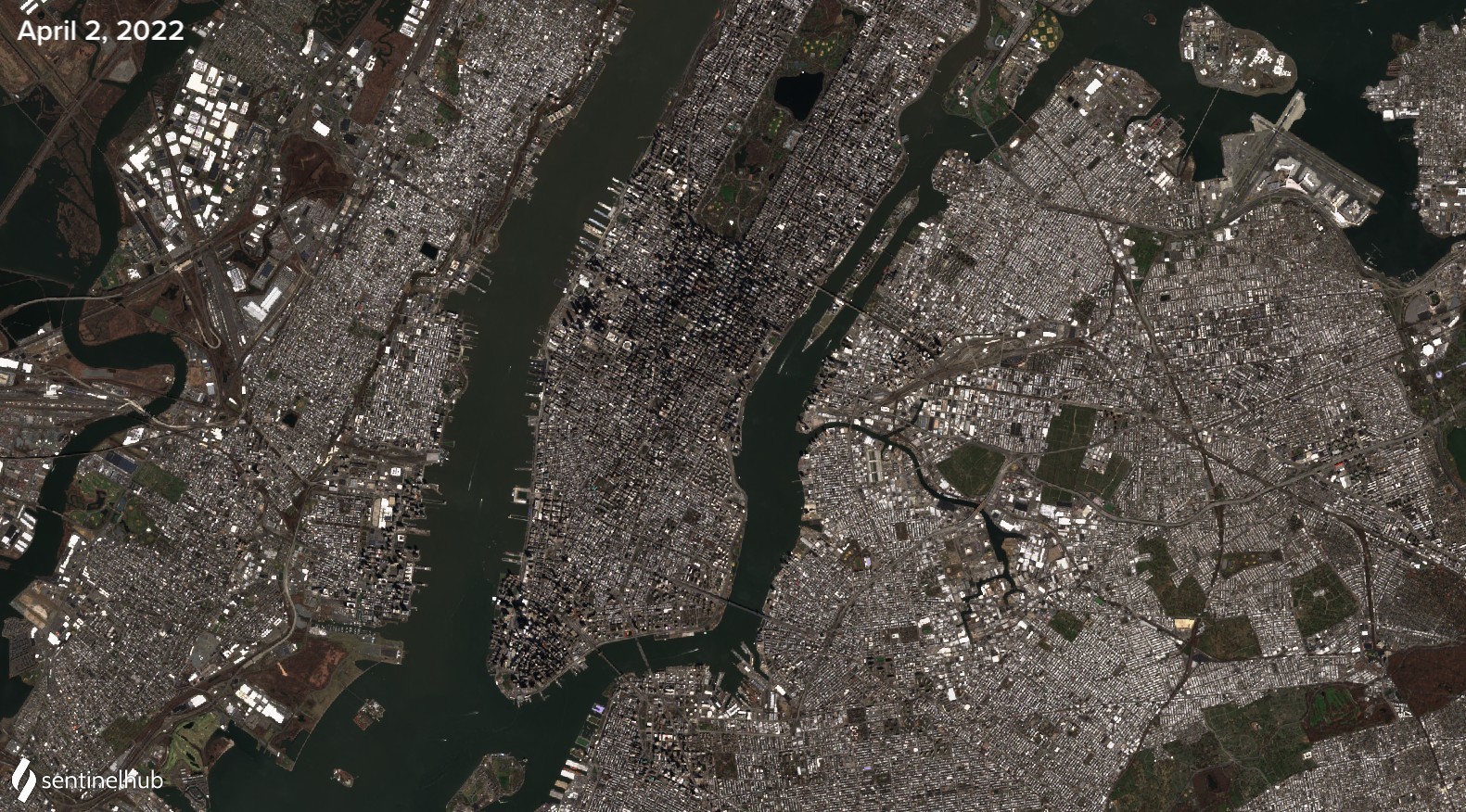 Image: New York City captured by the Sentinel-2A satellite on April 2, 2022. Source: Copernicus/ESA/SentinelHub