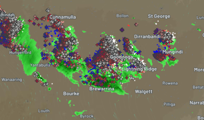 That story is pretty easy to believe when you take a look at the radar near Lightning Ridge this Tuesday afternoon, which shows thousands of lightning strikes in the vicinity of the town of 2200 residents in the NE corner of the state's Upper Western forecast district