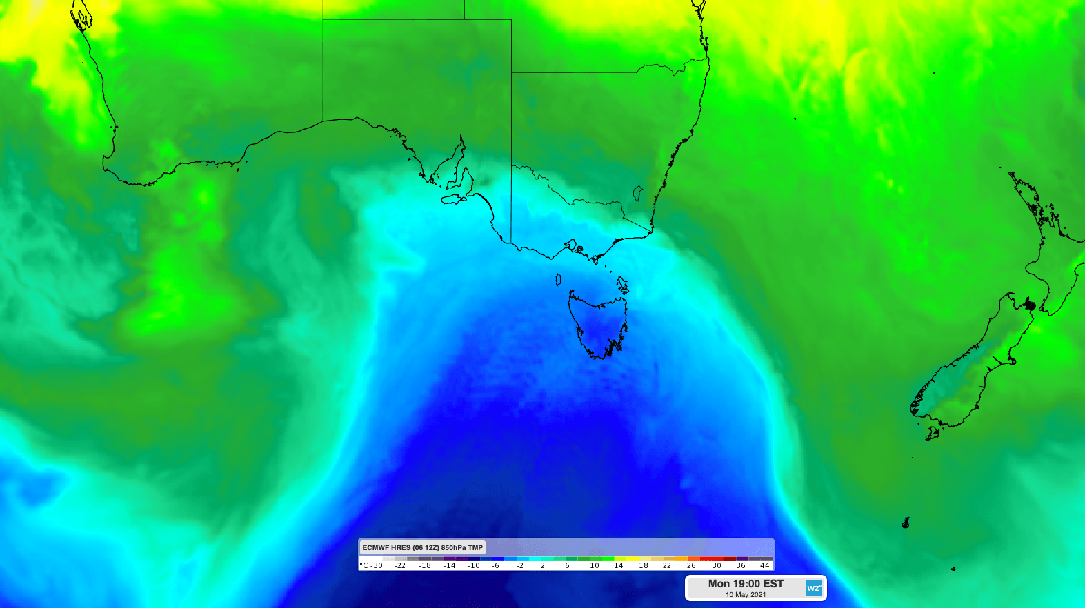 Image: A very cold air mass will spread over Tasmania on Monday. Get ready for snow!