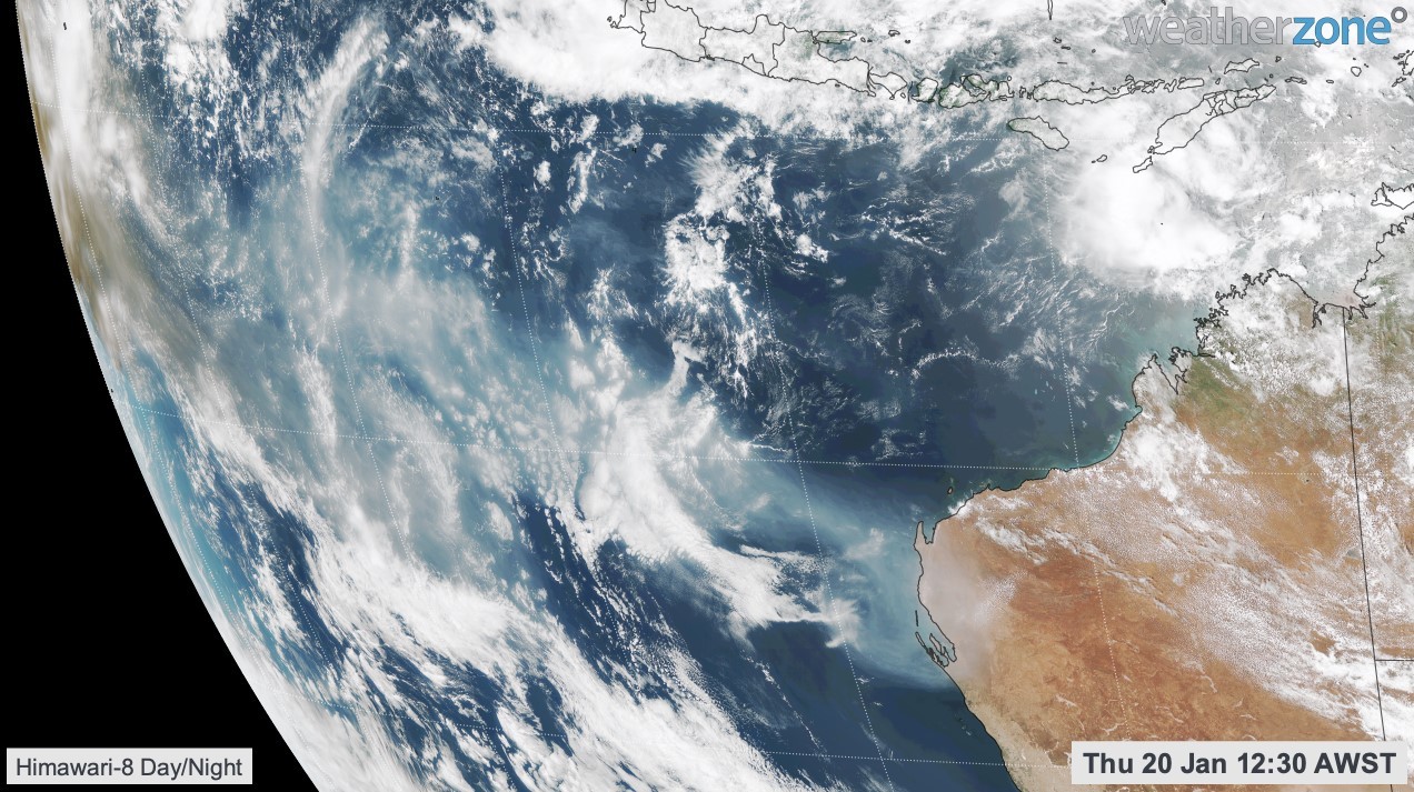 The cloud can be clearly seen extending across the ocean from Shark Bay in Western Australia in this dramatic image taken by the Himawari-8 satellite.