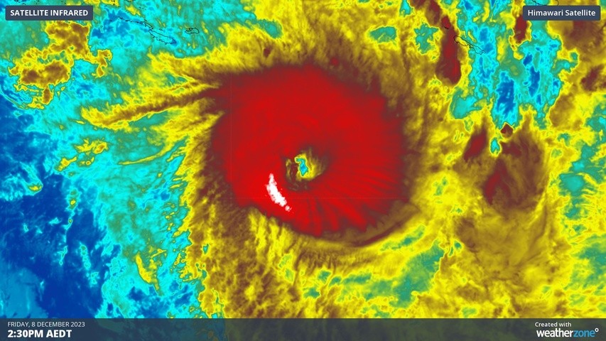 At 10am AEST on Friday, Jasper was located 1,200 km east-northeast of Cairns with sustained winds of 195 km/h and gusts reaching 270 km/h near its core.
