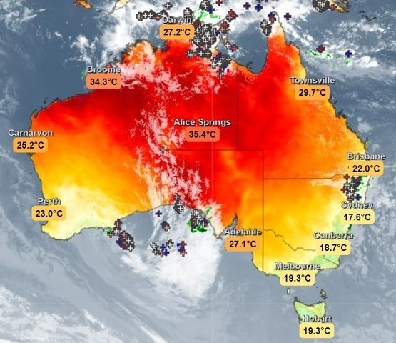 It cooled rapidly, all right. Indeed Sydney has lost nearly another degree in the 40 minutes it has taken to publish this story. Here are national temperatures just before 5 pm.
